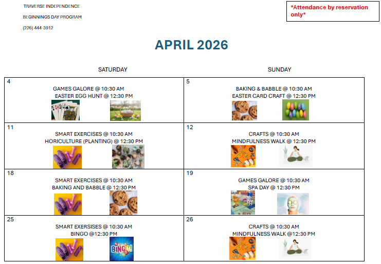 Beginnings is available on weekends as a respite program for caregivers, with a separate calendar of activities designed to provide engaging support for participants and reliable relief for caregivers. Weekend hours are 9:30 AM - 2:00 PM.